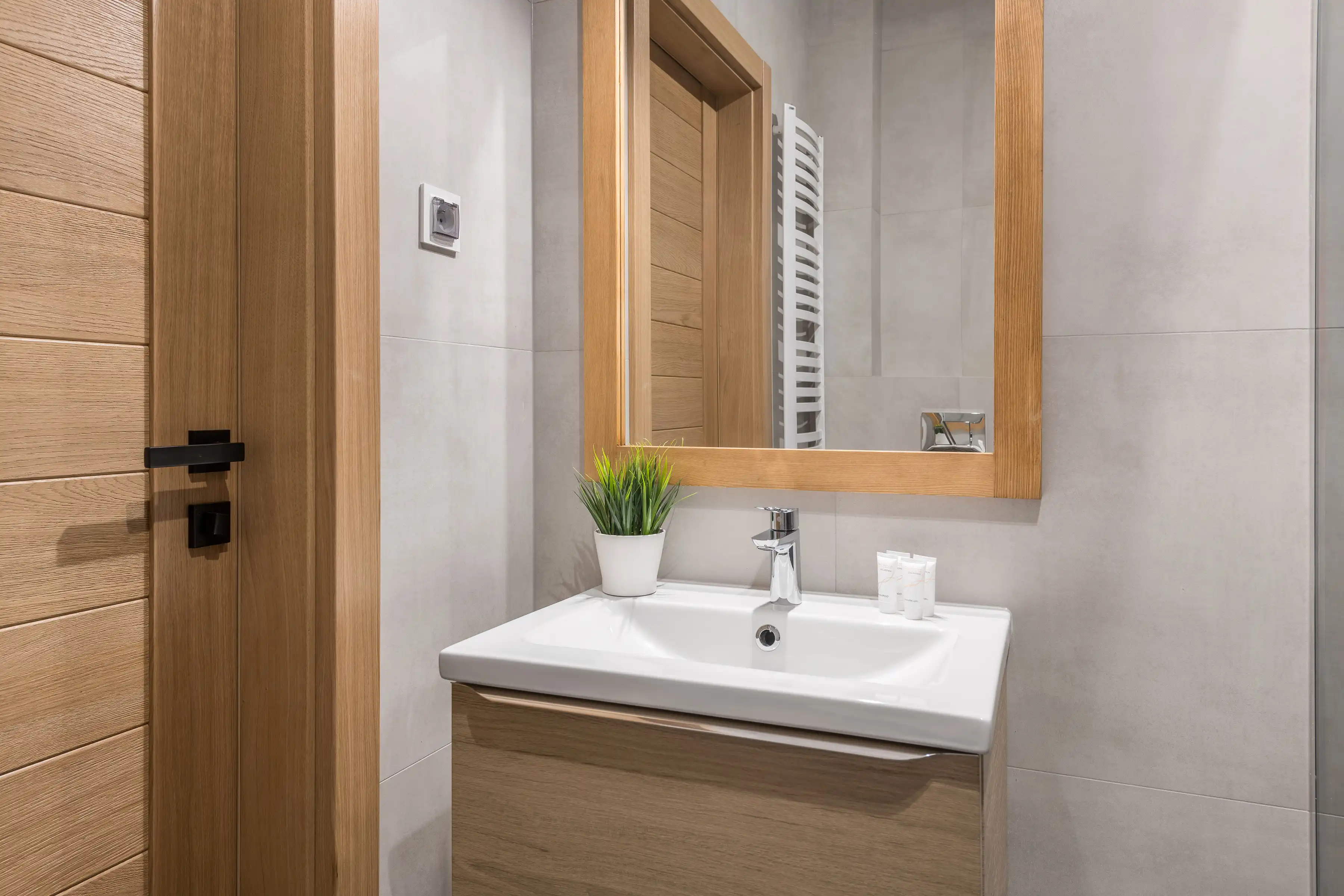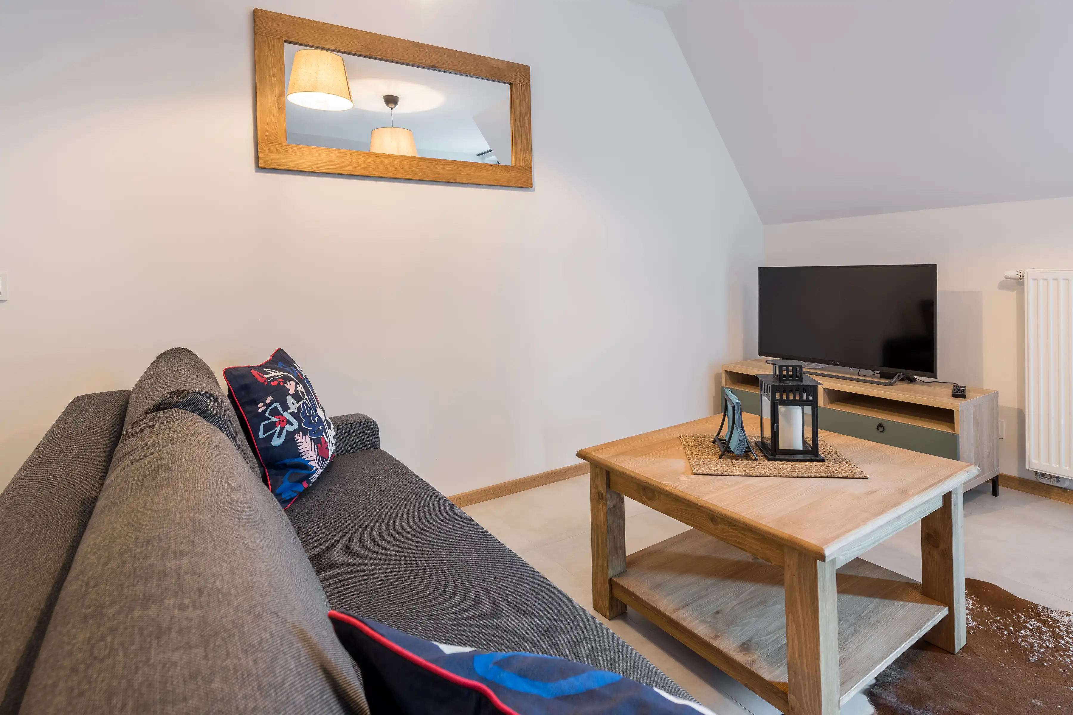 Wyjątkowa aranżacja wnętrza pomogła w stworzeniu klimatycznego miejsca. Połącznie nowoczesnego stylu oraz drewnianych dodatków sprawia, że apartament jest przytulny oraz funkcjonalny.