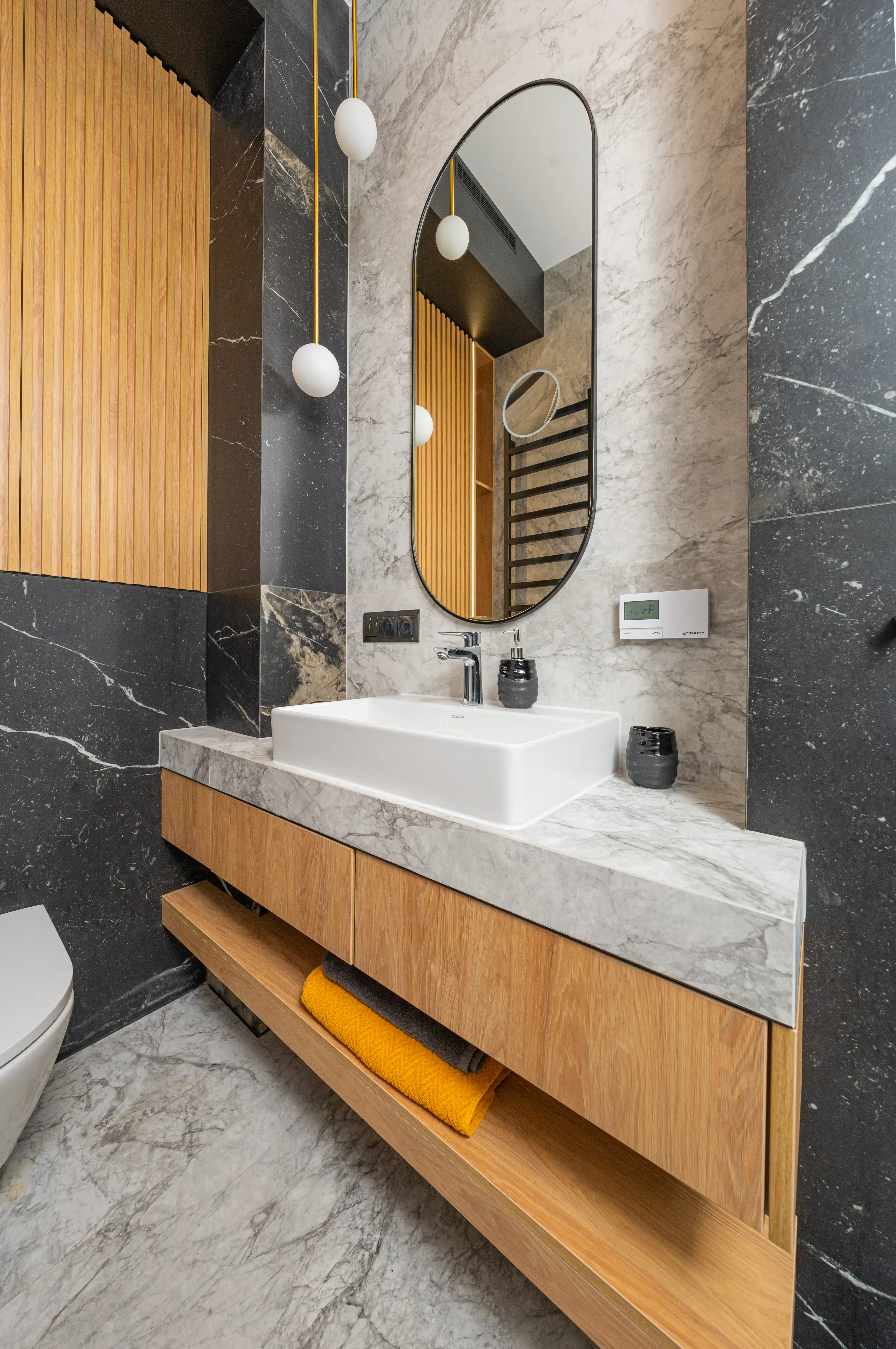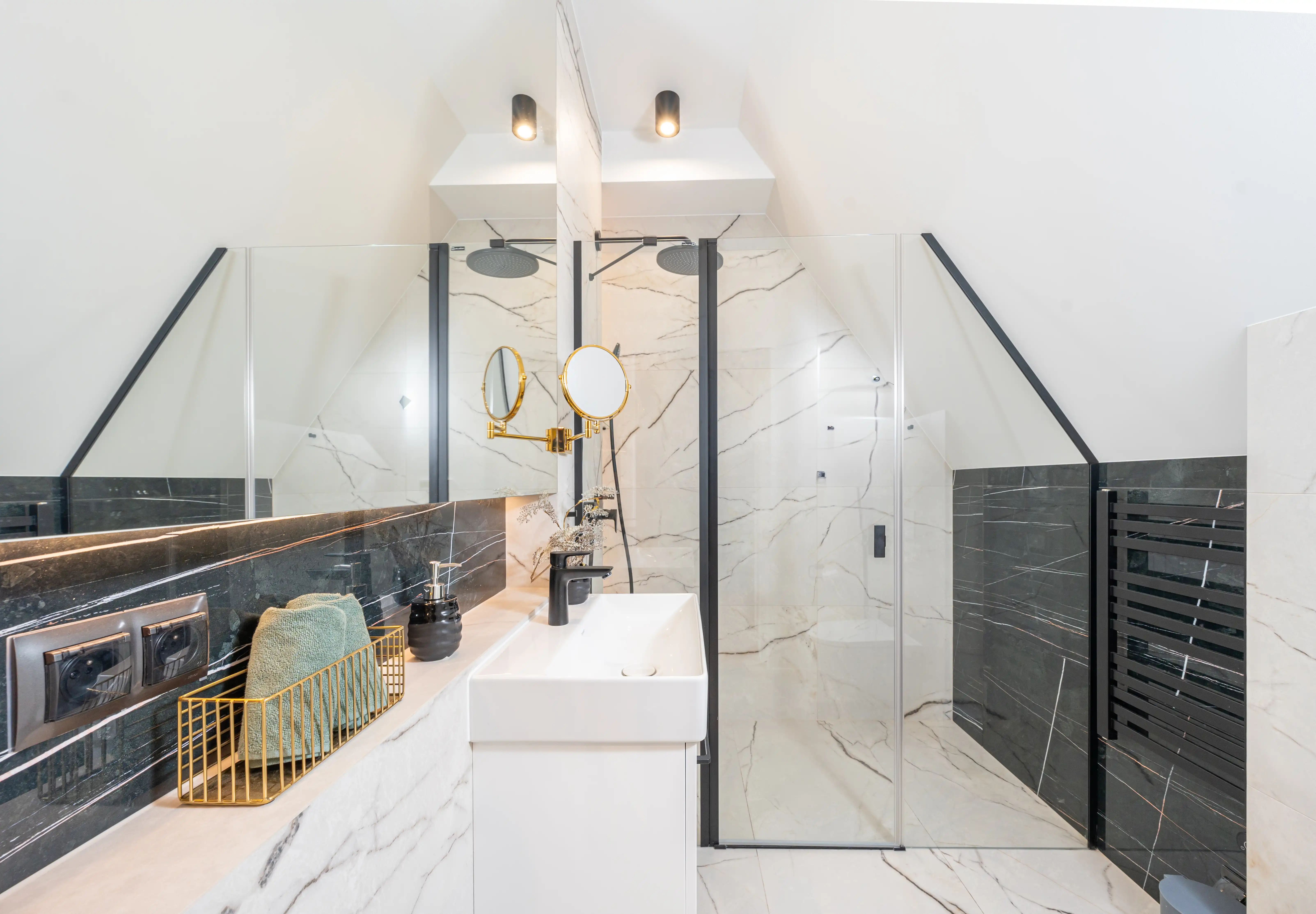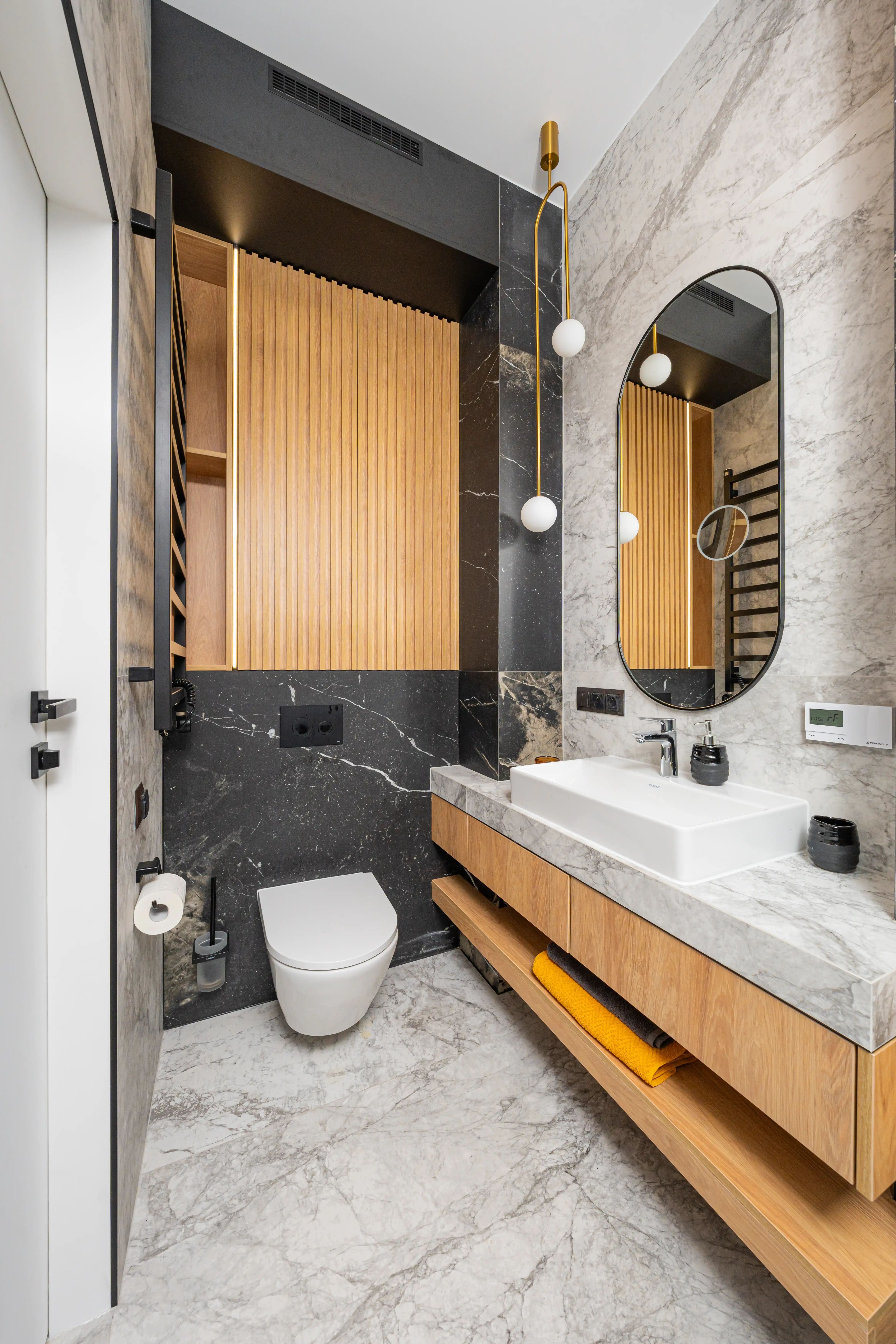 Luksusowe detale i nowoczesne oświetlenie nadają przestrzeni wyjątkowy klimat.