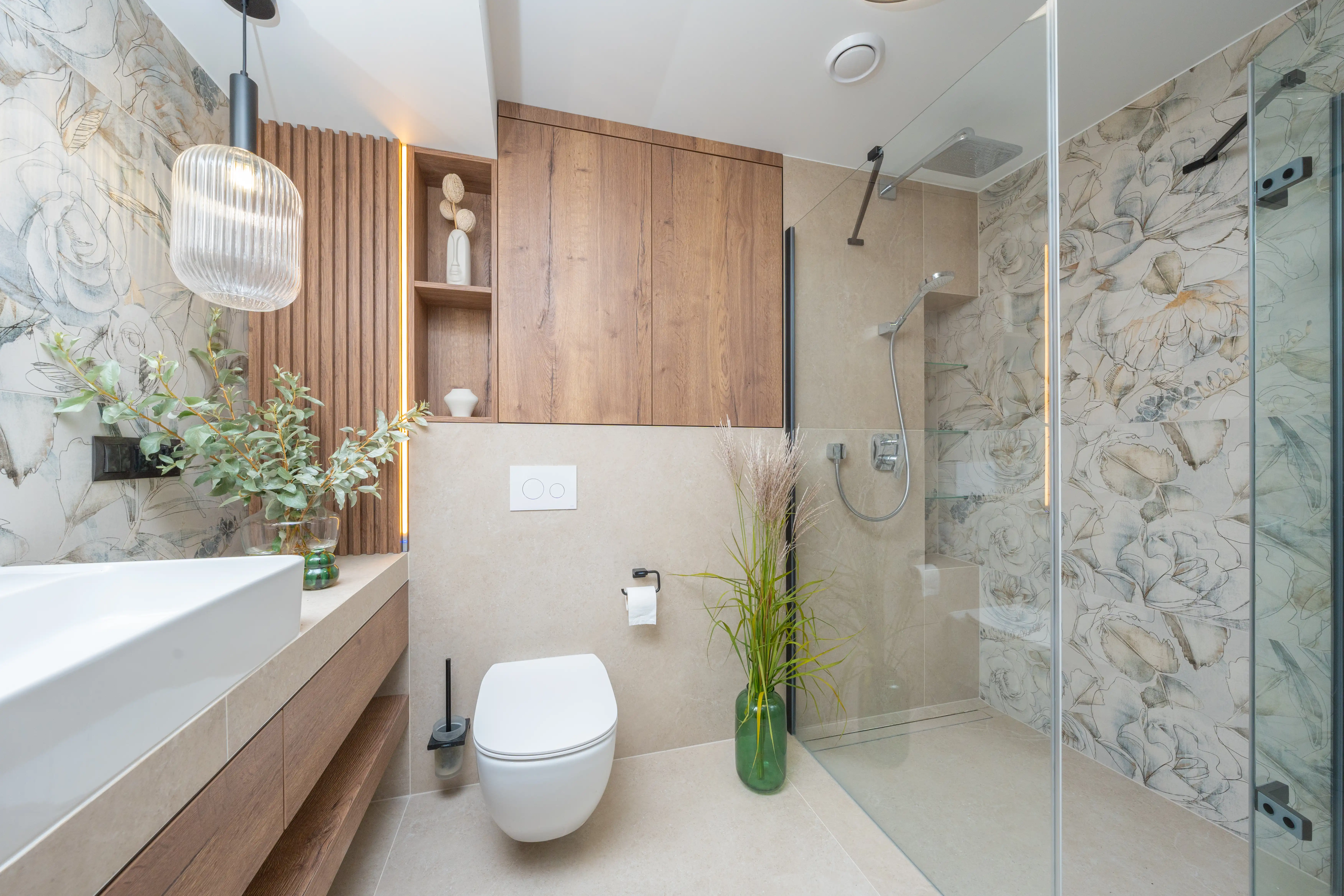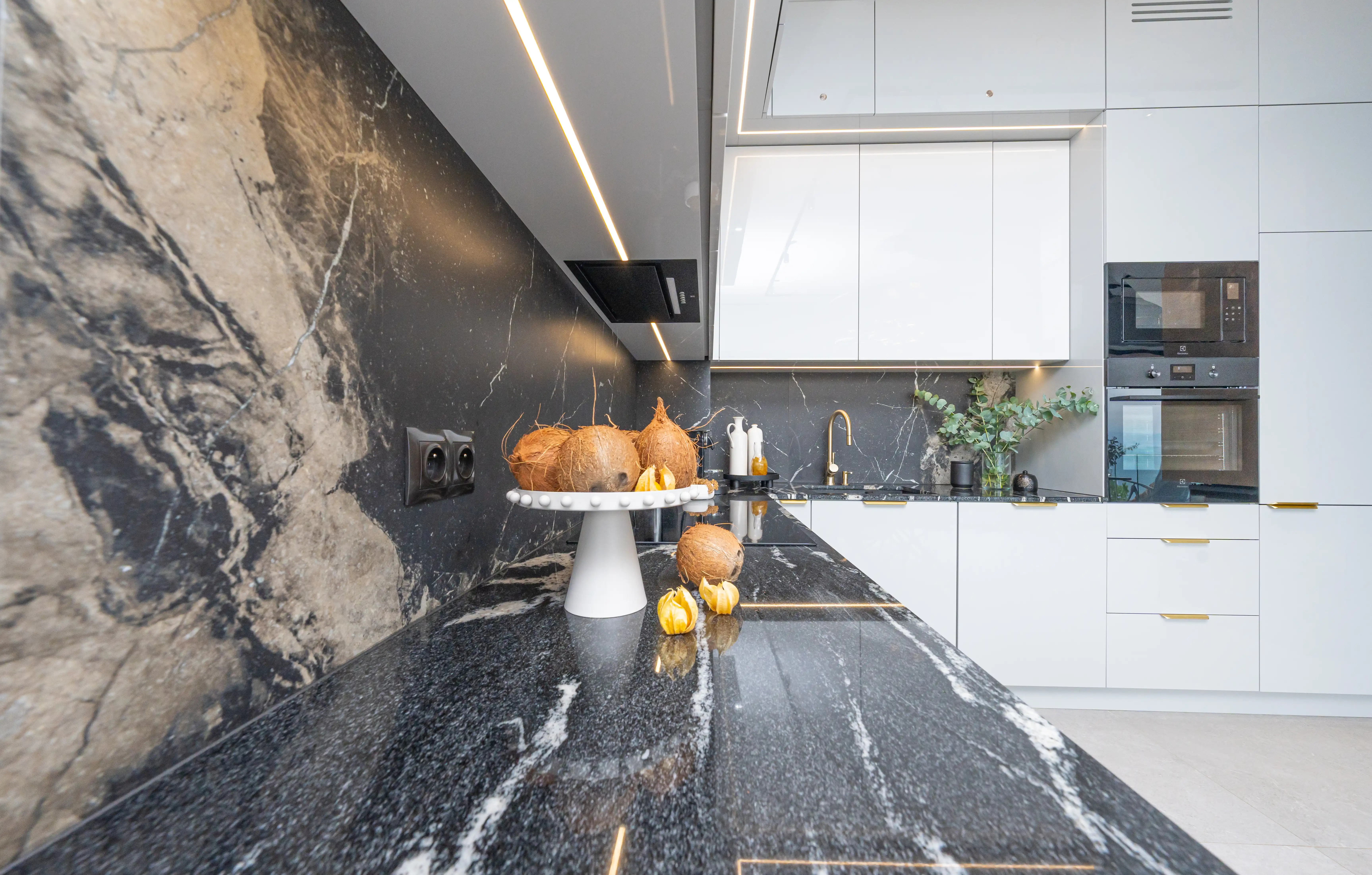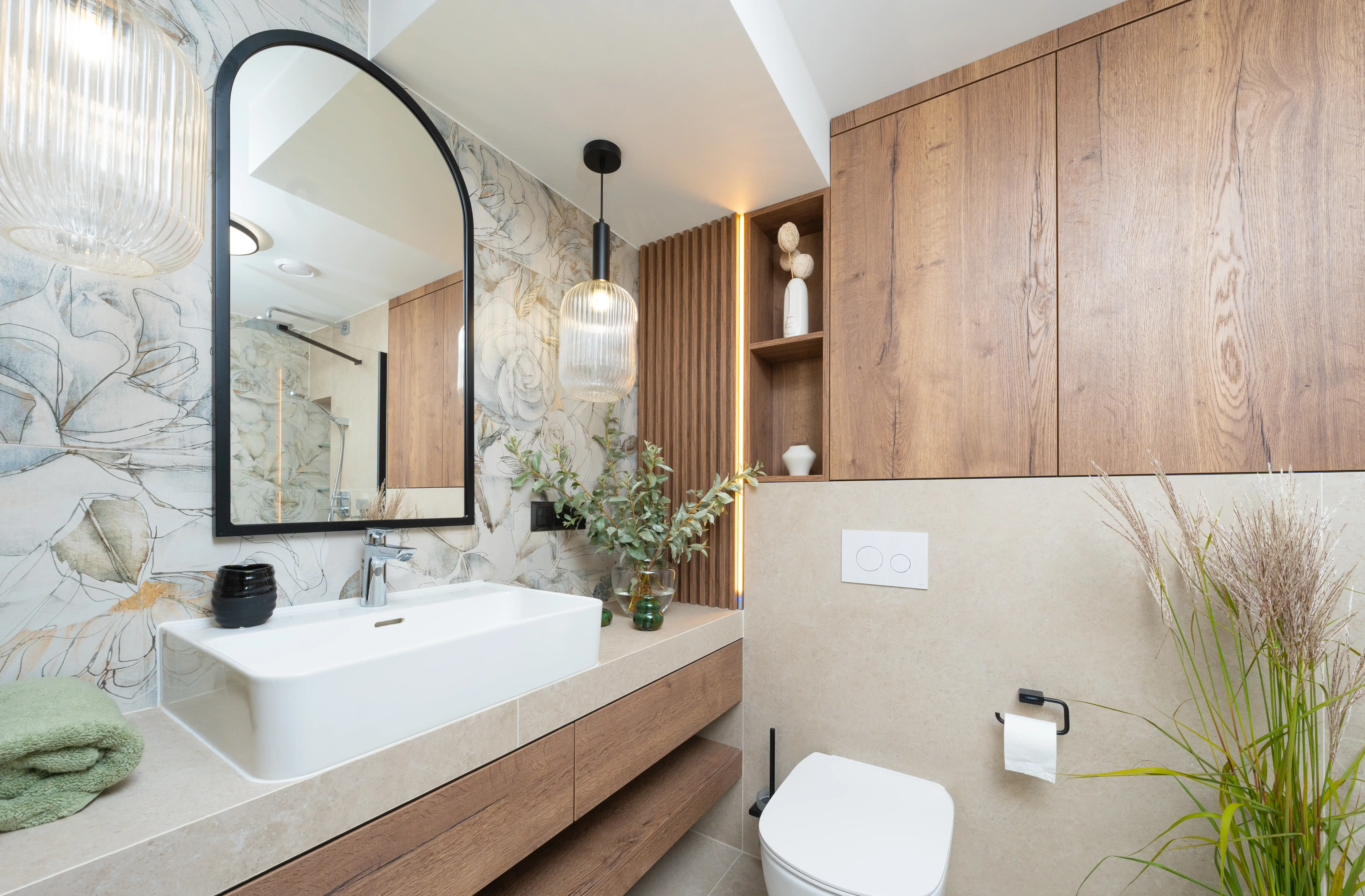Luksusowe detale i nowoczesne oświetlenie nadają przestrzeni wyjątkowy klimat.