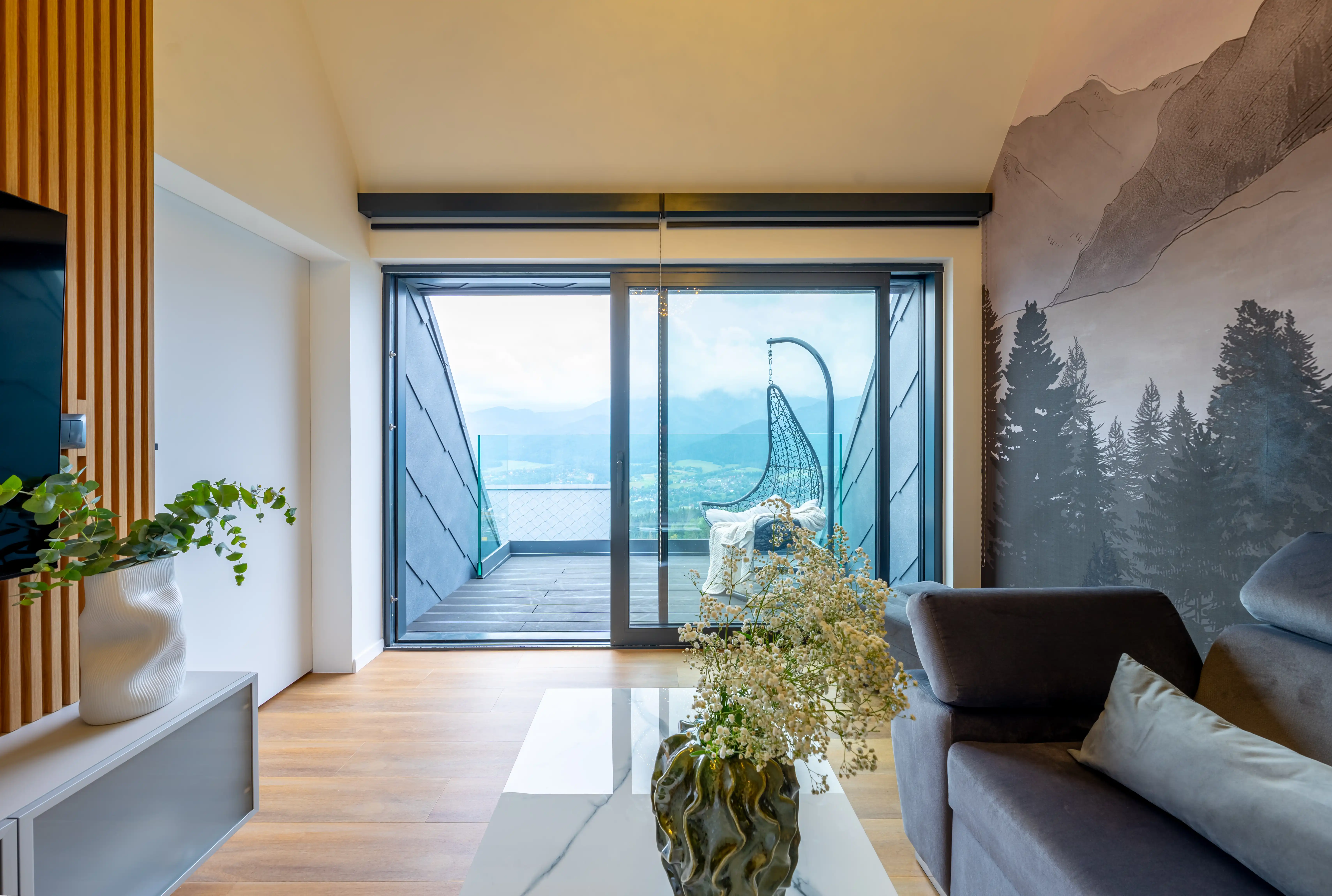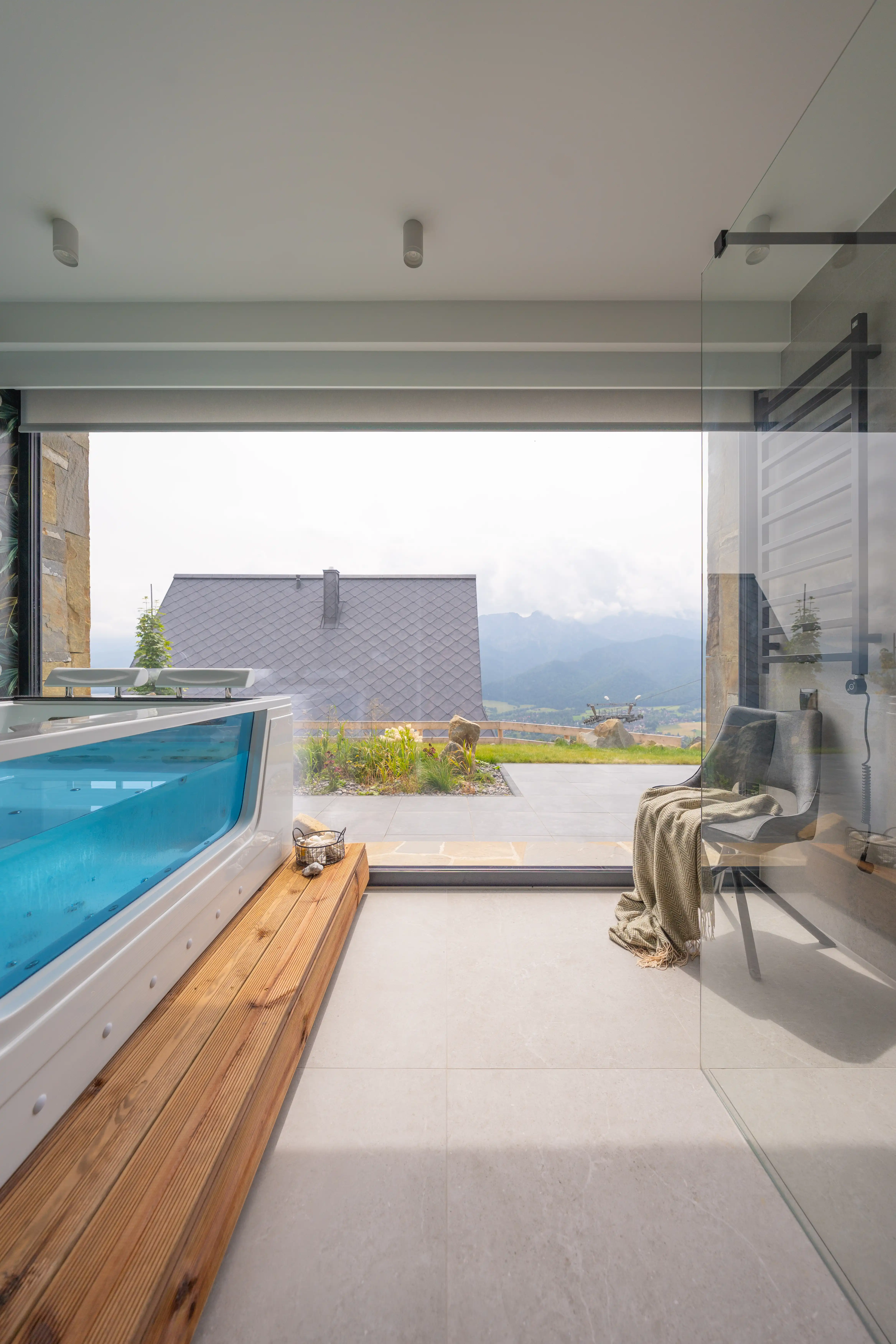 Wyjątkową atrakcją obiektu jest prywatne jacuzzi z panoramicznym widokiem na Tatry - idealne na wieczorny relaks, regenerację po nartach lub romantyczne chwile.