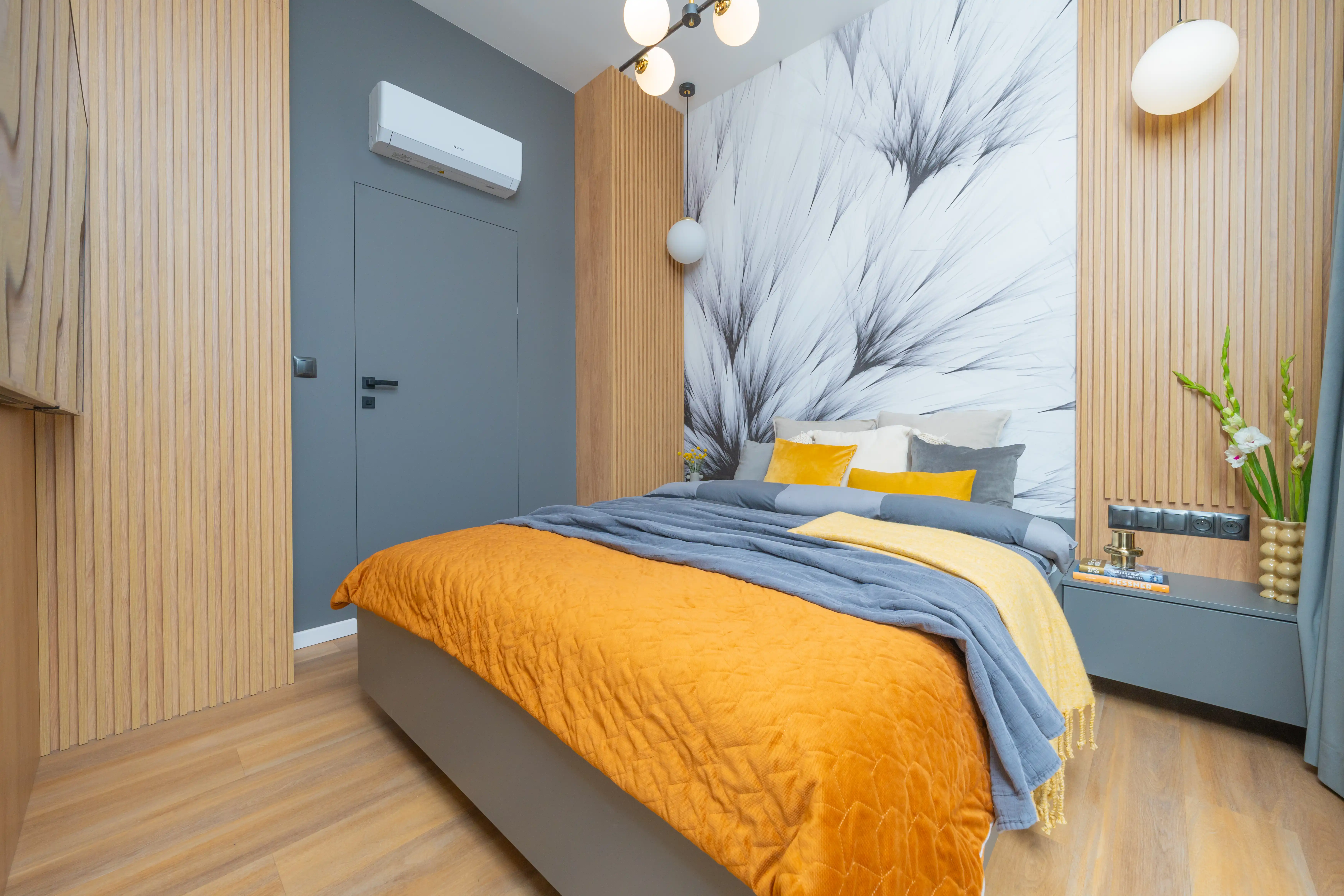 Sypialnia: łoże małżeńskie, dwa stoliki nocne wraz z oświetleniem.