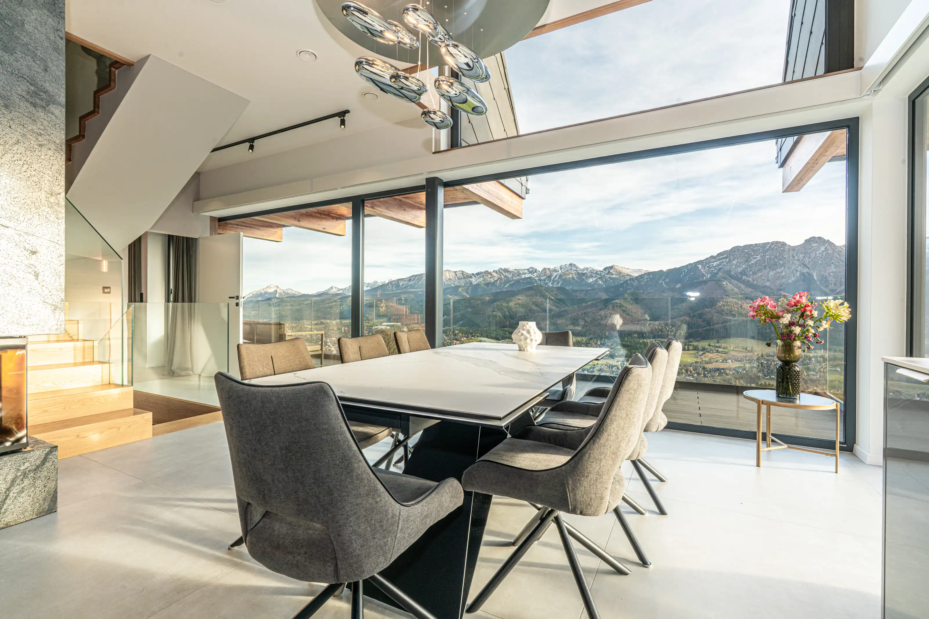 Zapraszamy Państwa do luksusowego, nowoczesnego domu o powierzchni 200 m², idealny dla 10 osób, położonego na Polanie Pająkówka 1C, w wyjątkowej lokalizacji znanej jako Szymoszkowa. To jeden z najbardziej widokowych punktów w rejonie Zakopanego - z obiektu rozciąga się niezwykła panorama Tatr, w tym Giewont, Kasprowy Wierch oraz cała grań Tatr Wysokich.