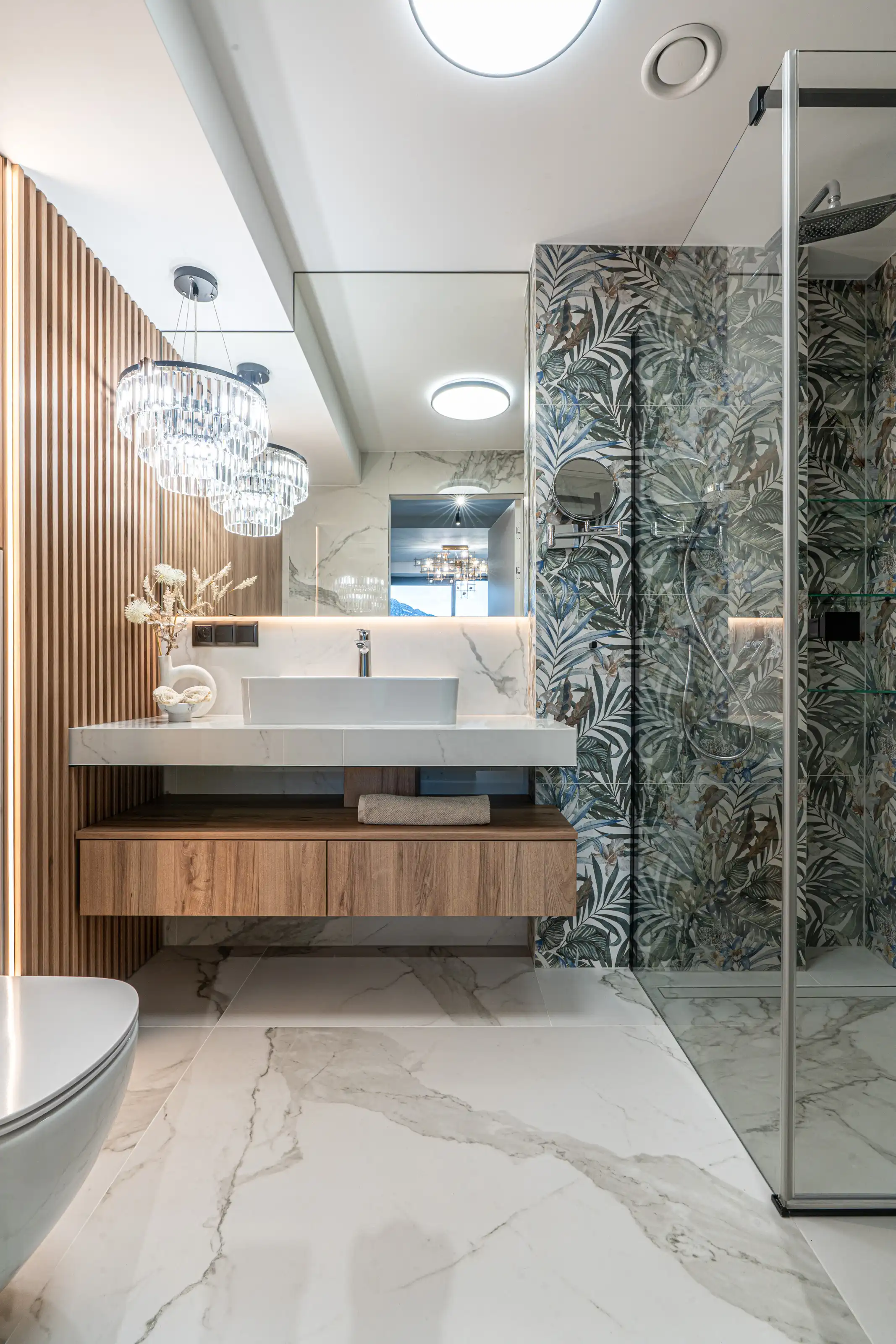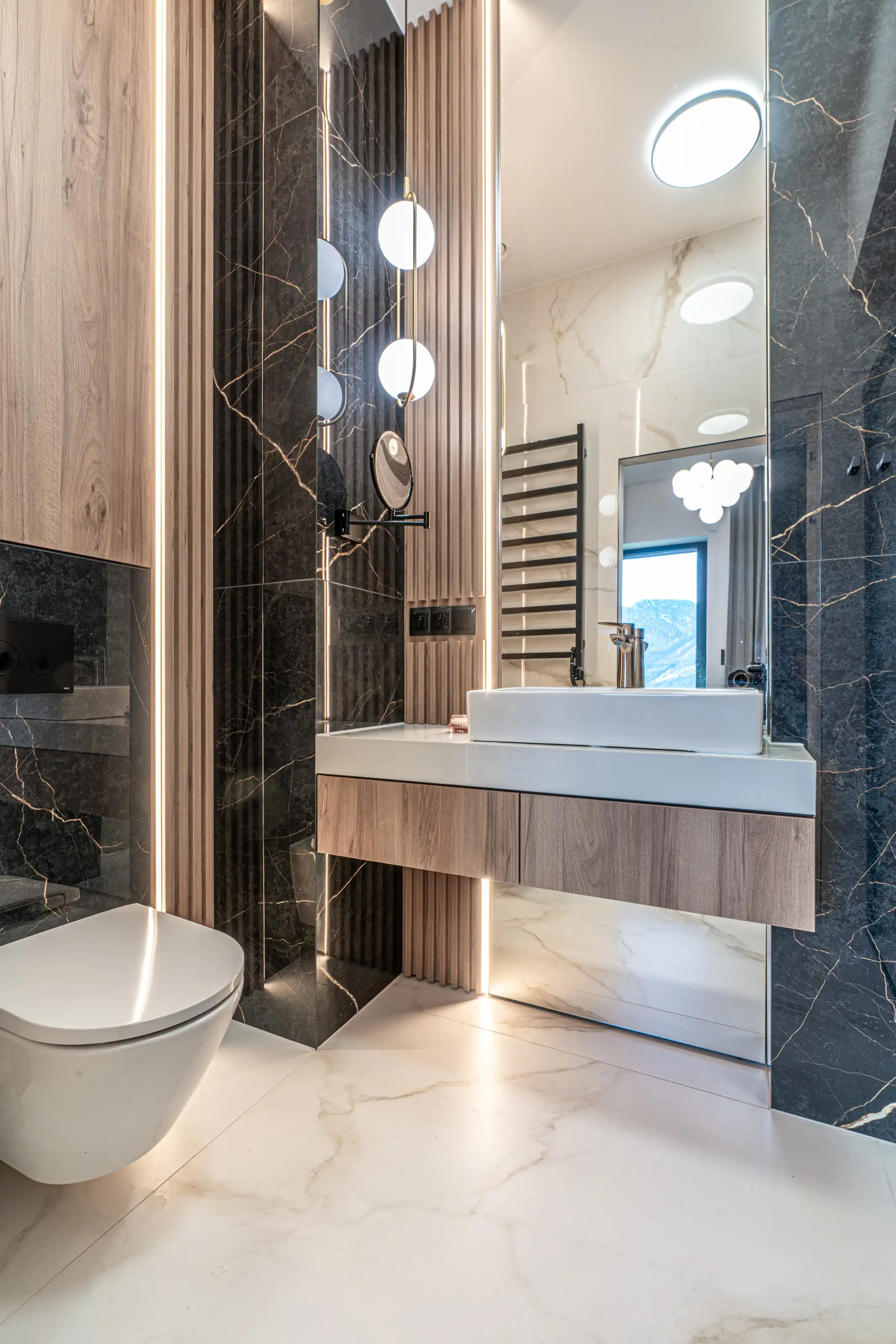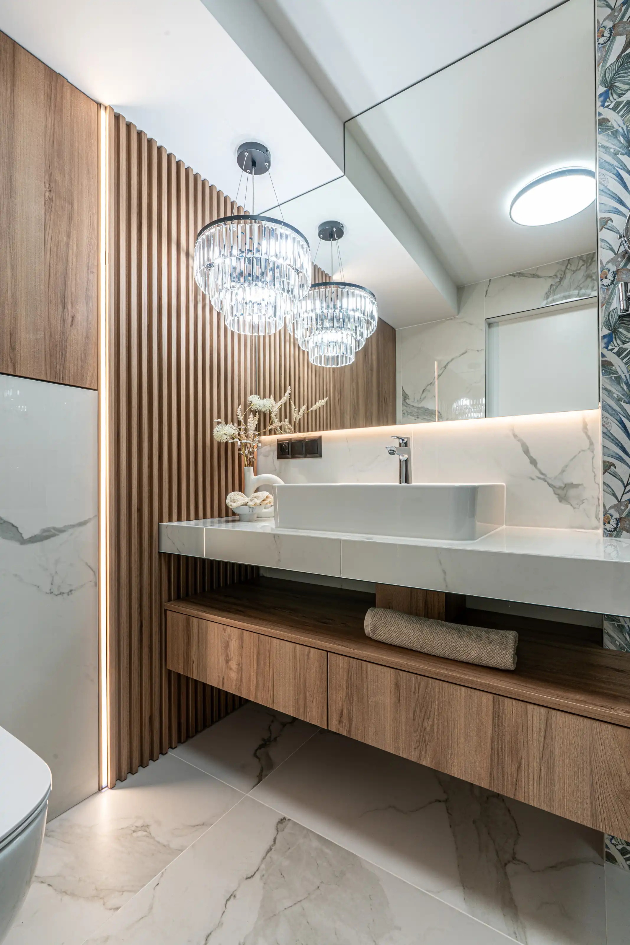 Luksusowe detale i nowoczesne oświetlenie nadają przestrzeni wyjątkowy klimat.
