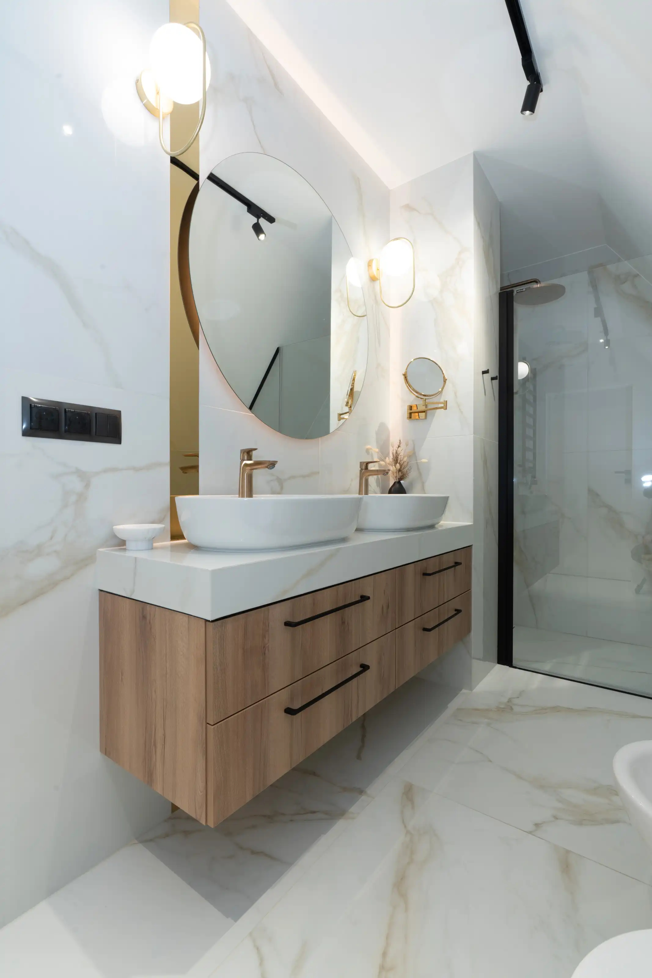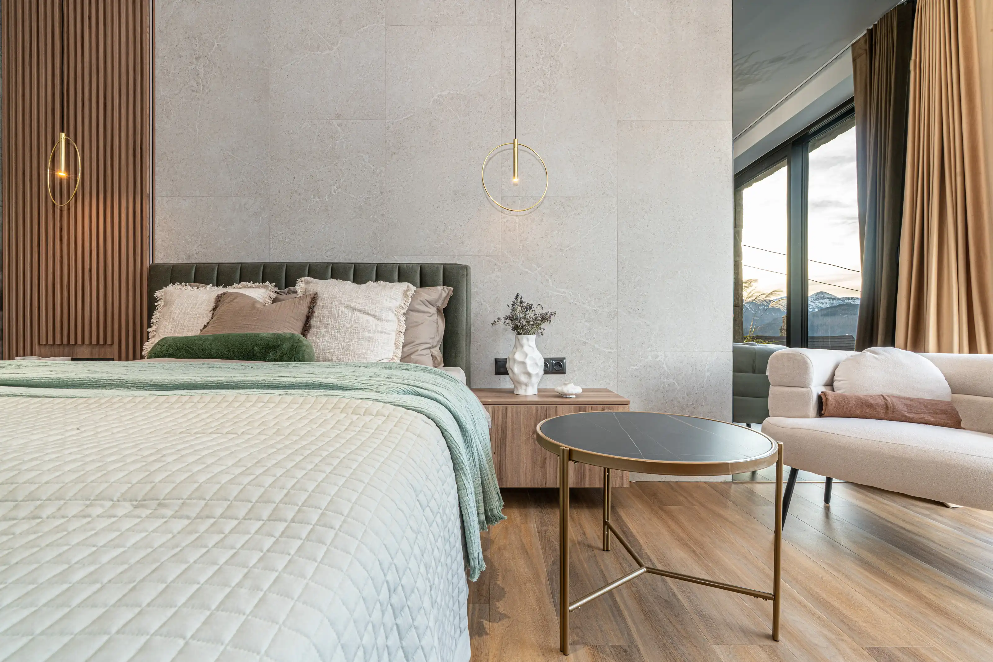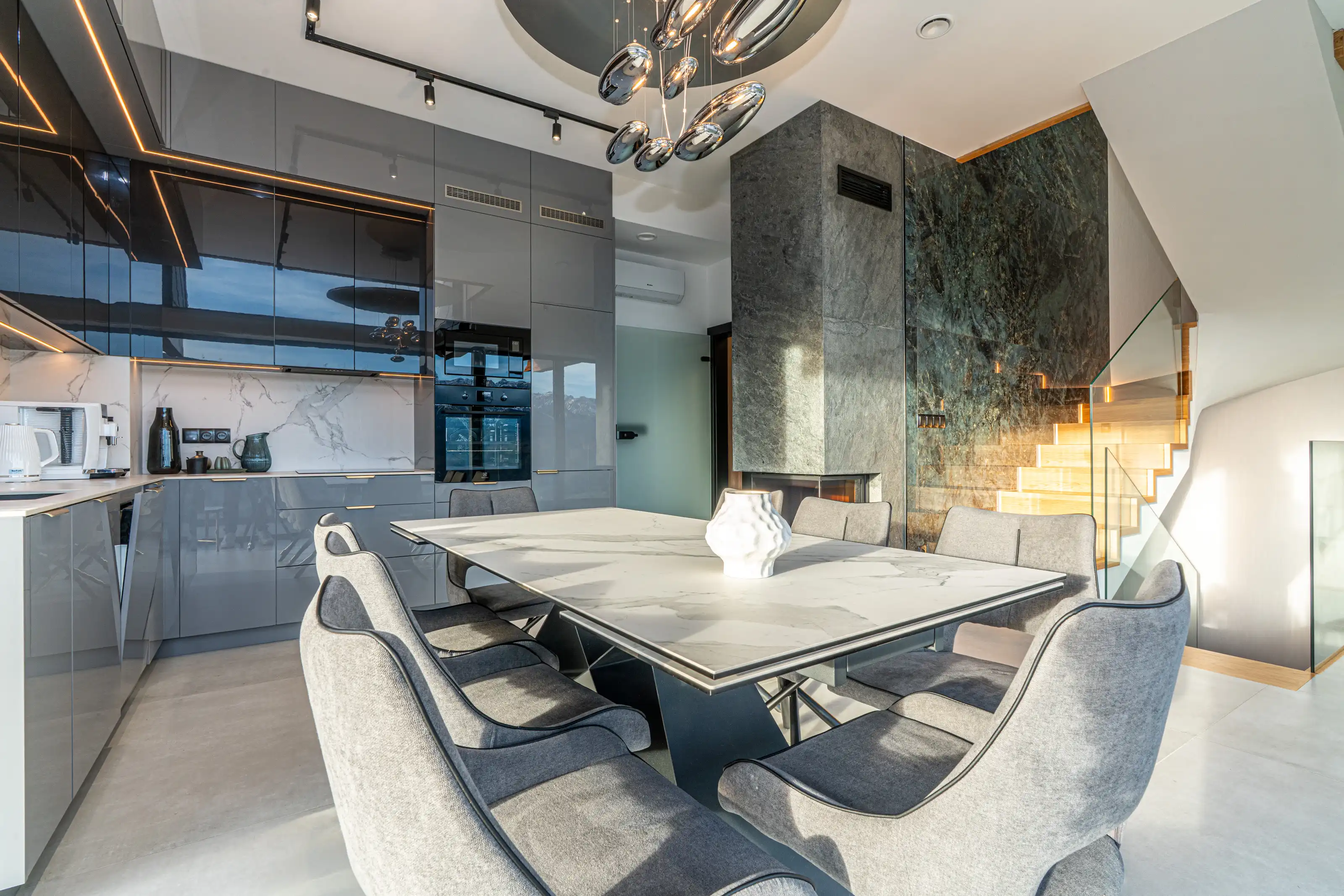 Luksusowe detale i nowoczesne oświetlenie nadają przestrzeni wyjątkowy klimat.
